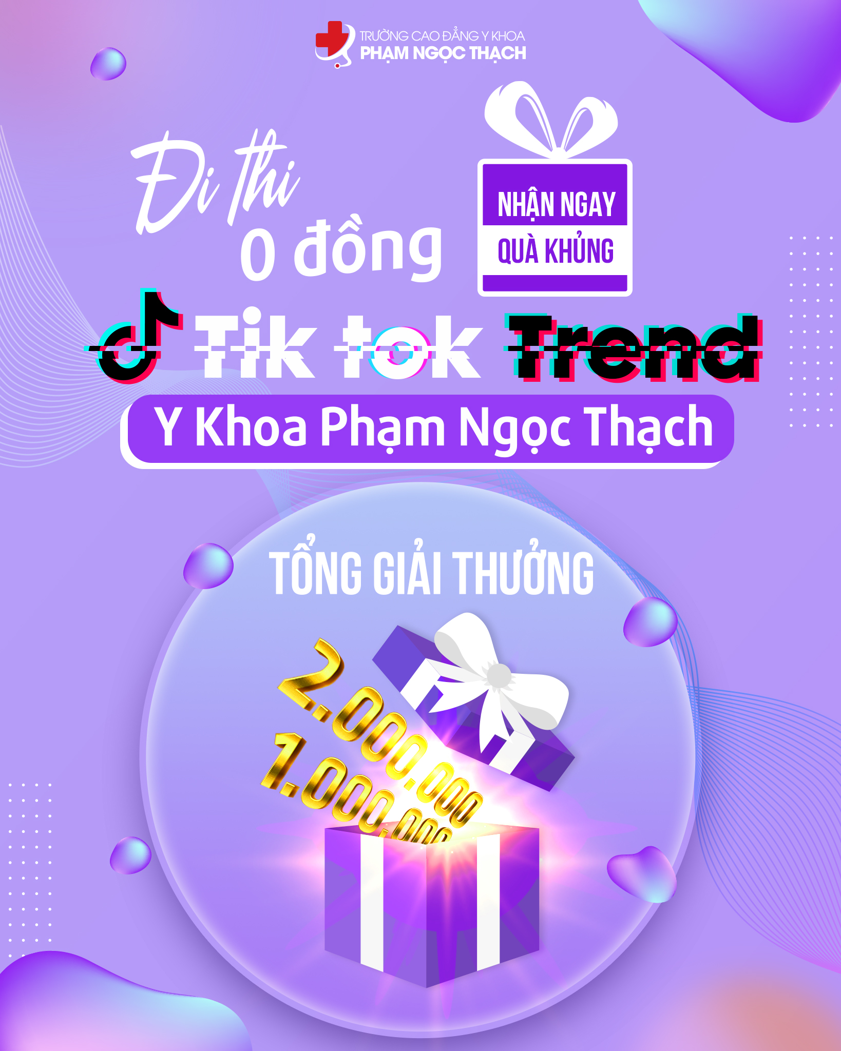Trong thời điểm, diễn biến dịch Covid vẫn rất phức tạp cùng với việc hưởng ứng thông điệp 5k của Bộ Y Tế. Trường Cao đẳng Y Khoa Phạm Ngọc Thạch tổ chức cuộc thi “ Đi thi 0 đồng – Nhận ngay quà khủng” với mong muốn tạo sân chơi cho sinh viên toàn trường nâng cao trách nhiệm việc phòng chống dịch