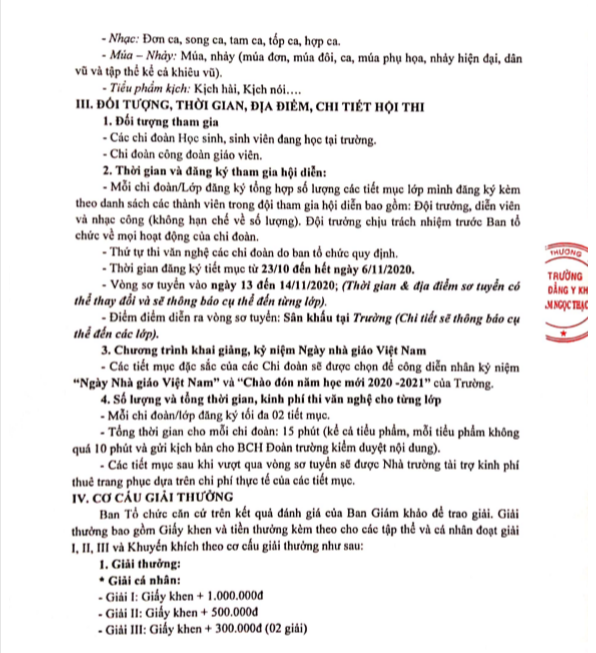 Thông báo kế hoạch cuộc thi văn nghệ Chào mừng năm học mới 2024 – 2025 & Kỷ niệm 42 năm ngày Nhà giáo Việt Nam (20/11/1982 – 20/11/2024)