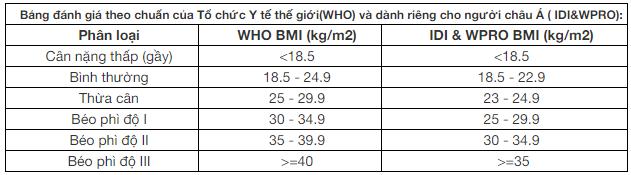 Chỉ số BMI được đọc dựa theo Bảng đánh giá tiêu chuẩn của Tổ chức y tế thế giới (WHO) đồng thời được dành riêng cho người Châu Á (IDI & WPRO):