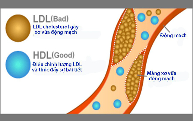 Loại này đóng vai trò vận chuyển hầu hết các Cholesterol trong cơ thể. Khi hàm lượng LDL tăng nhiều trong máu thì cơ thể sẽ có nguy cơ bị lắng đọng mỡ trong thành mạch máu, nhiều nhất là ở tim, phổi và là nguyên nhân gây xơ vữa động mạch. Đây chính là lý do mà LDL được gọi là Cholesterol loại xấu. Nguy hiểm hơn, các mảng xơ vữa này có thể gây tắc hoặc hẹp mạch máu, vỡ mạch máu đột ngột, và gây nên những biến chứng là tai biến mạch máu não hay nhồi máu cơ tim.